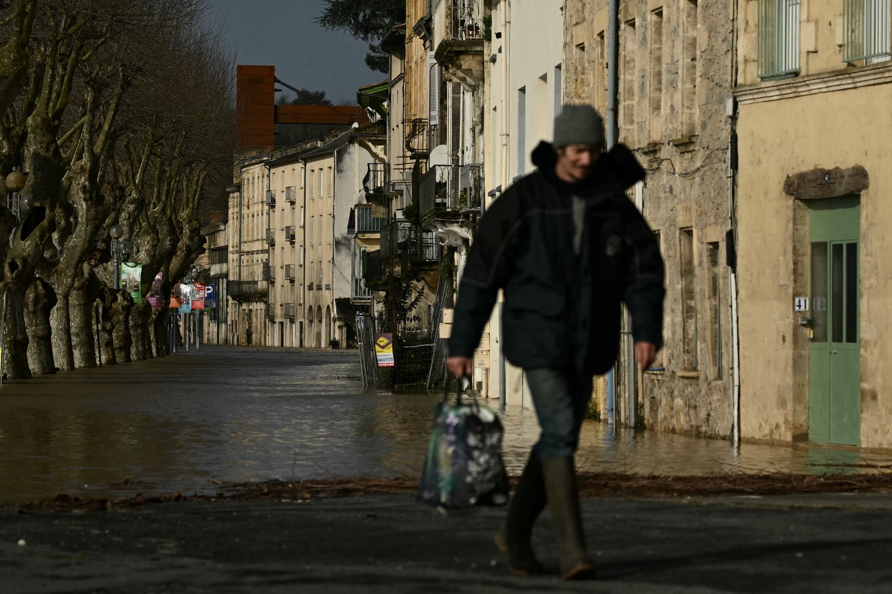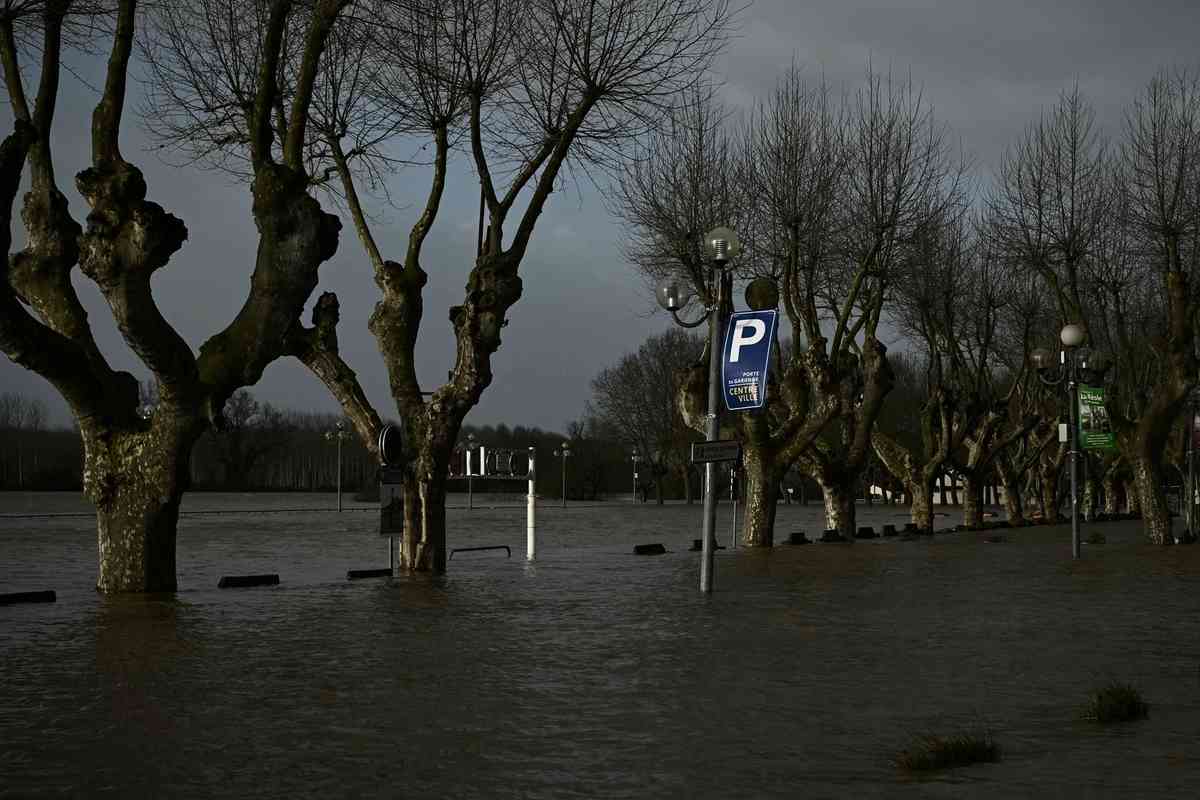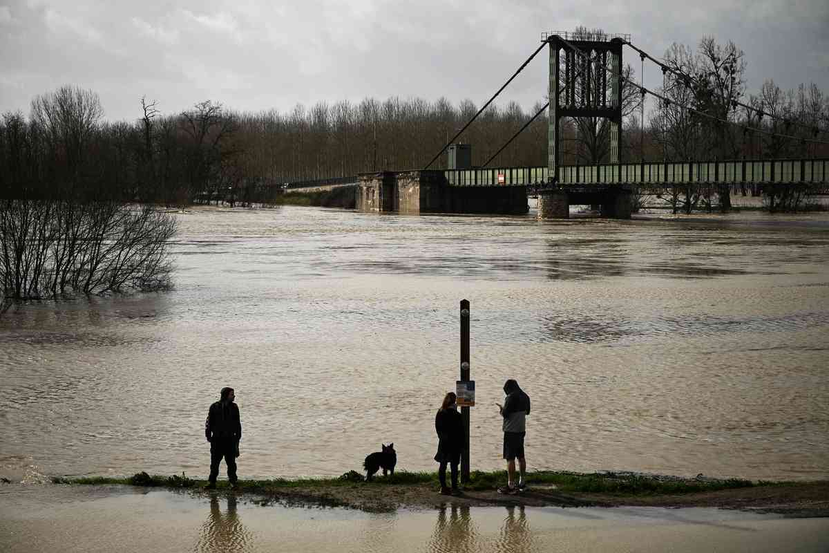 2026年2月12日,風暴「尼爾斯」(Nils)帶來的強風和暴雨導致加龍河(Garonne River)水位暴漲,法國西南部城市馬爾芒德(Marmande)發生洪澇災害。(Philippe LOPEZ/AFP via Getty Images)