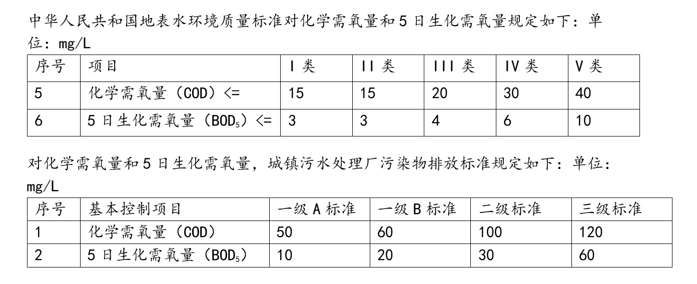 以化學需氧量和5日生化需氧量為例。