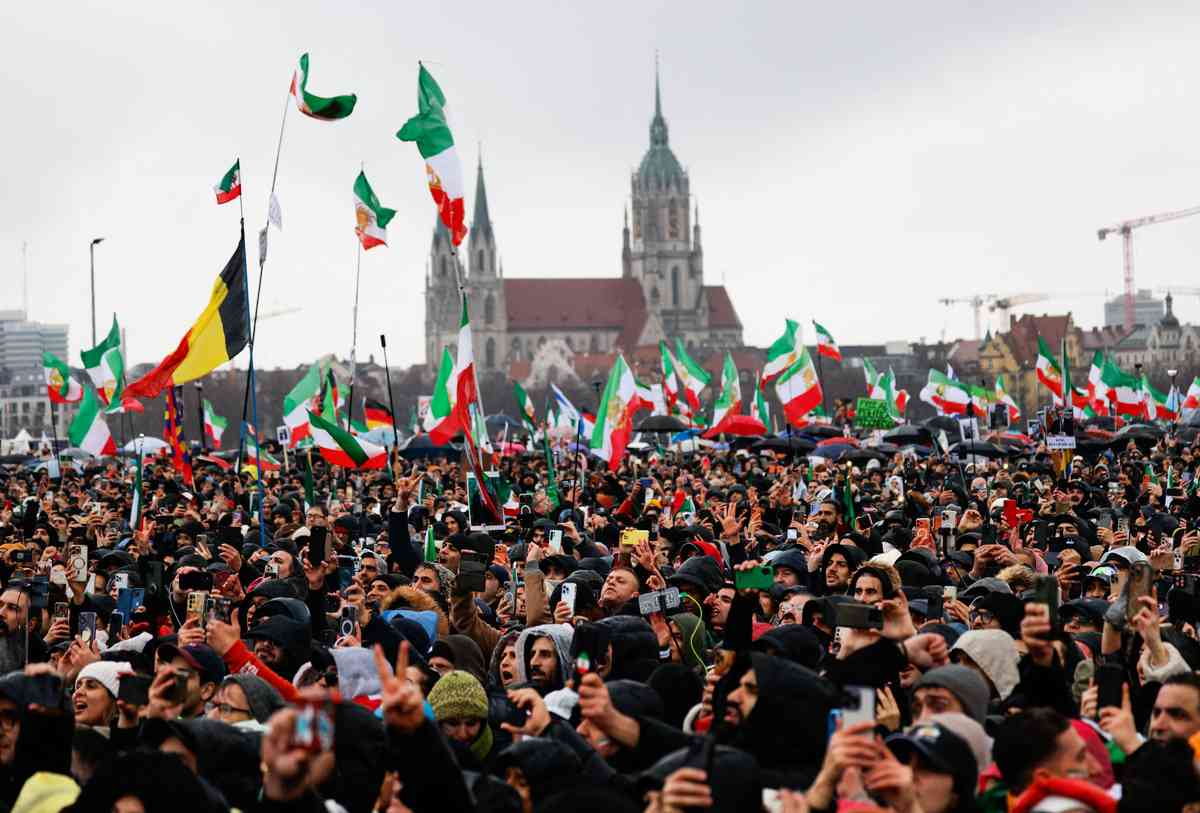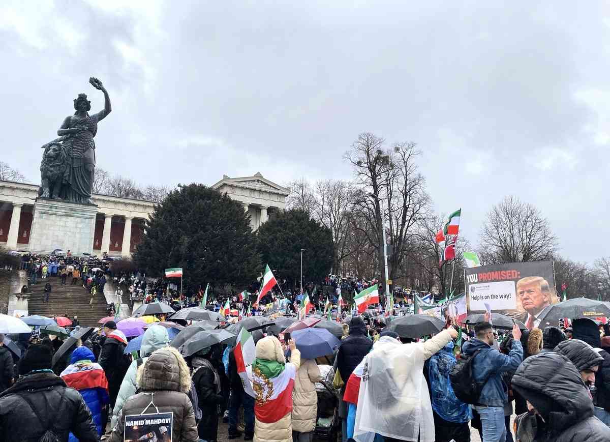 影片:2026年2月14日,來自歐洲大約25萬伊朗人雲集德國慕尼黑,冒雨在慕尼黑特蕾莎草坪(Theresienwiesen)參加反抗伊朗政權的活動。呼籲國際社會關注伊朗局勢,加大向伊朗當局施壓力度。