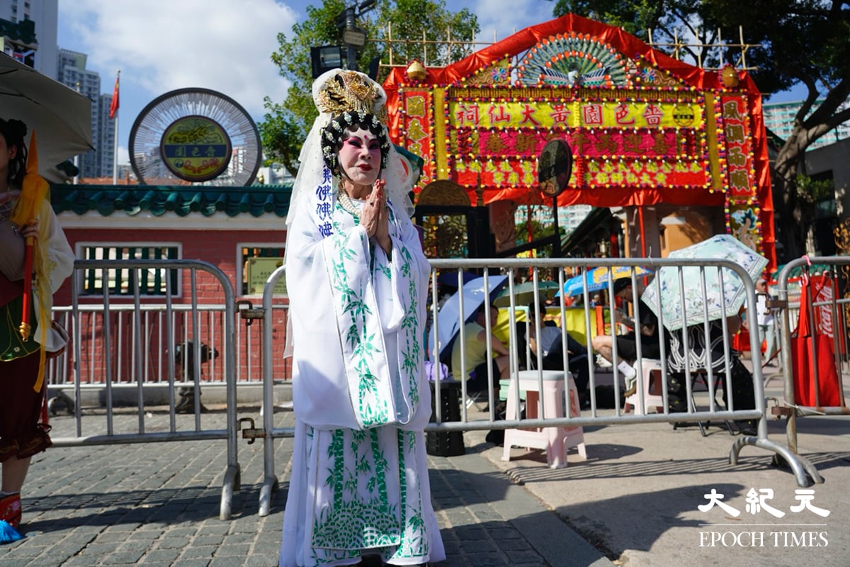 現年95歲的藝人黃夏蕙今日(16日)一如既往,在黃曆新年前夕現身嗇色園黃大仙祠,爭取今晚上頭炷香的頭位,她今年以觀世音菩薩造型登場,希望為香港市民祈福。她特別祝福大紀元觀眾馬年好運、馬年身體好、馬上發財、馬上有錢。