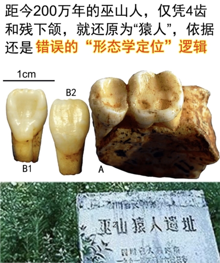 但是不管怎麼爭議,依據7個牙齒,根本無法還原個體形貌。還是按照錯誤的「形態學定位」邏輯,簡單還原為「猿人」,簡稱巫山人。