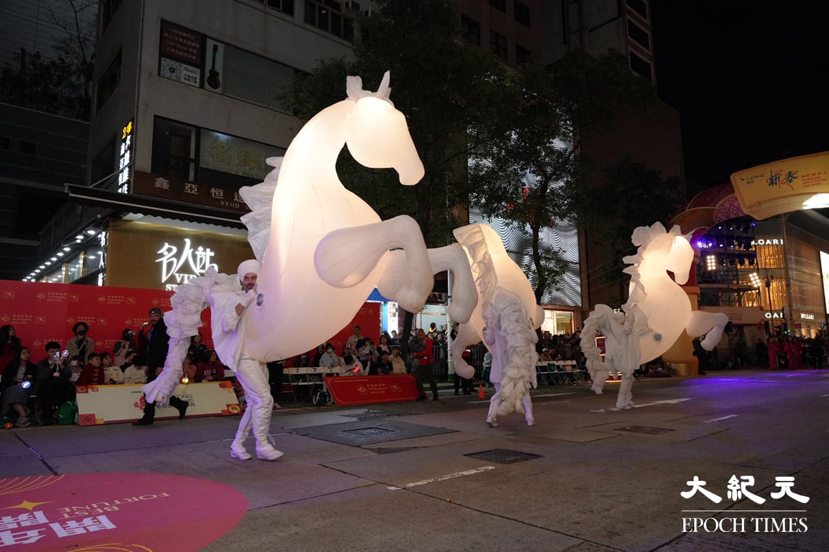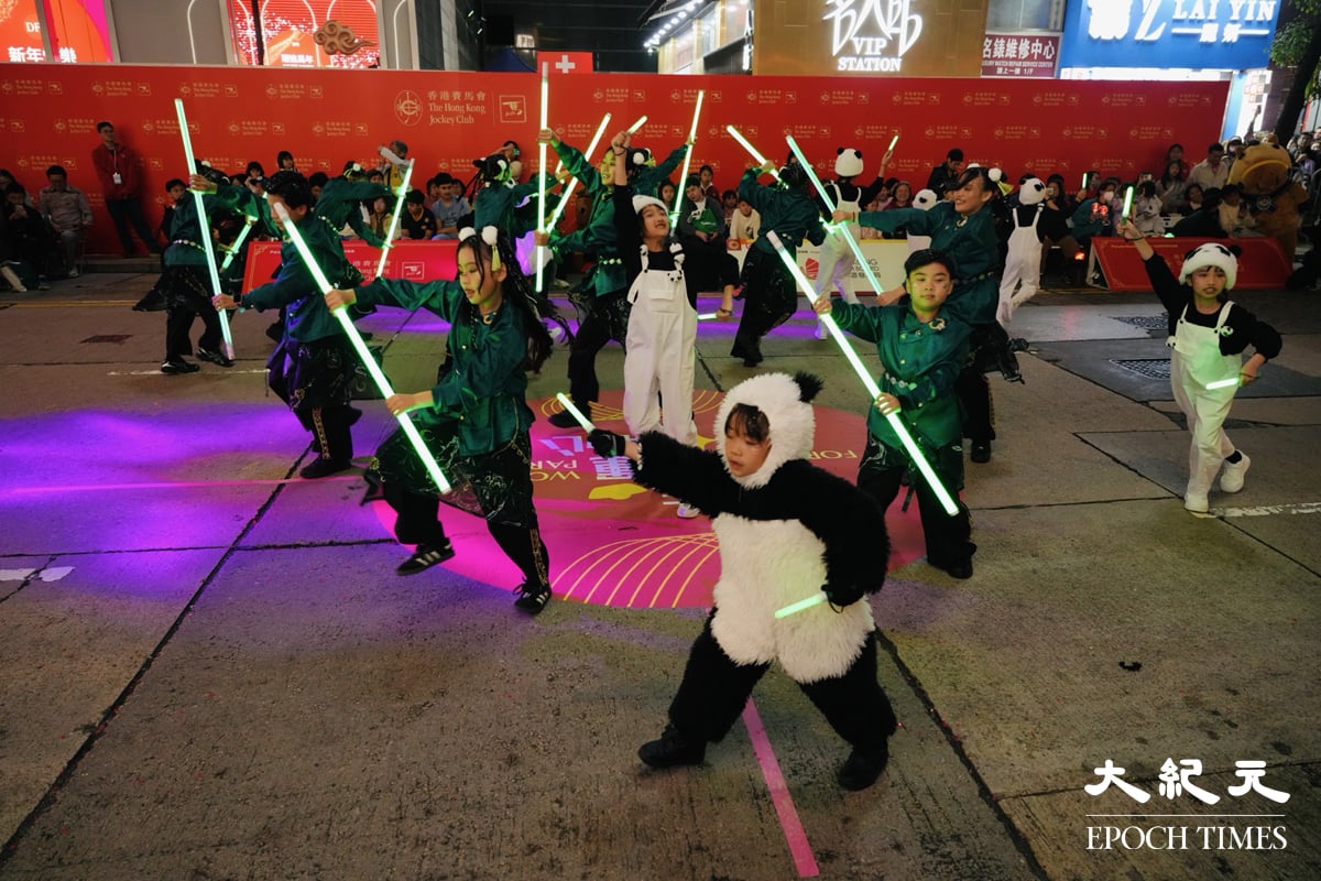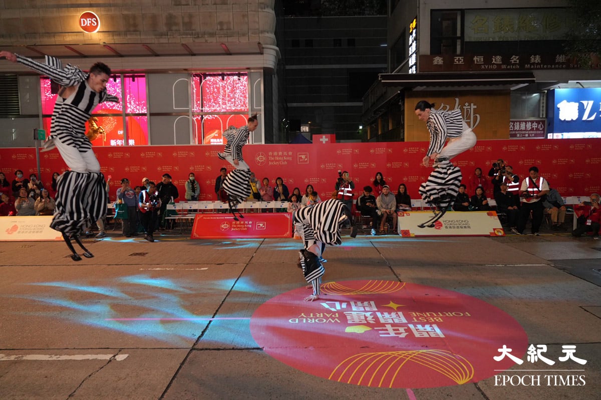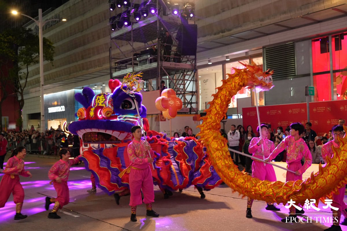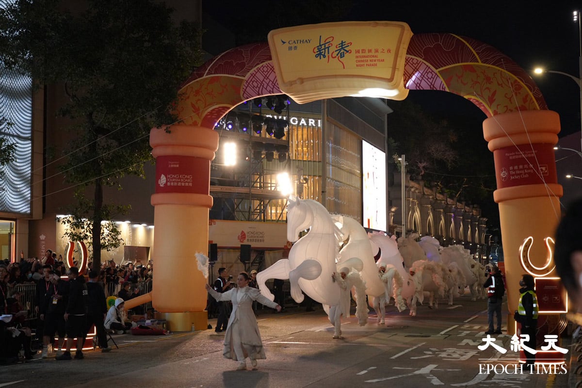 香港賽馬會花車還有舞龍表演。(霄龍/大紀元)