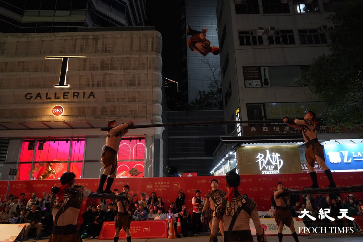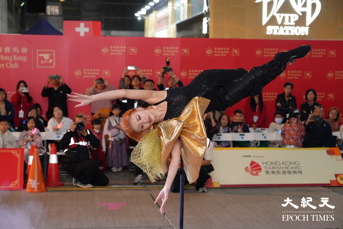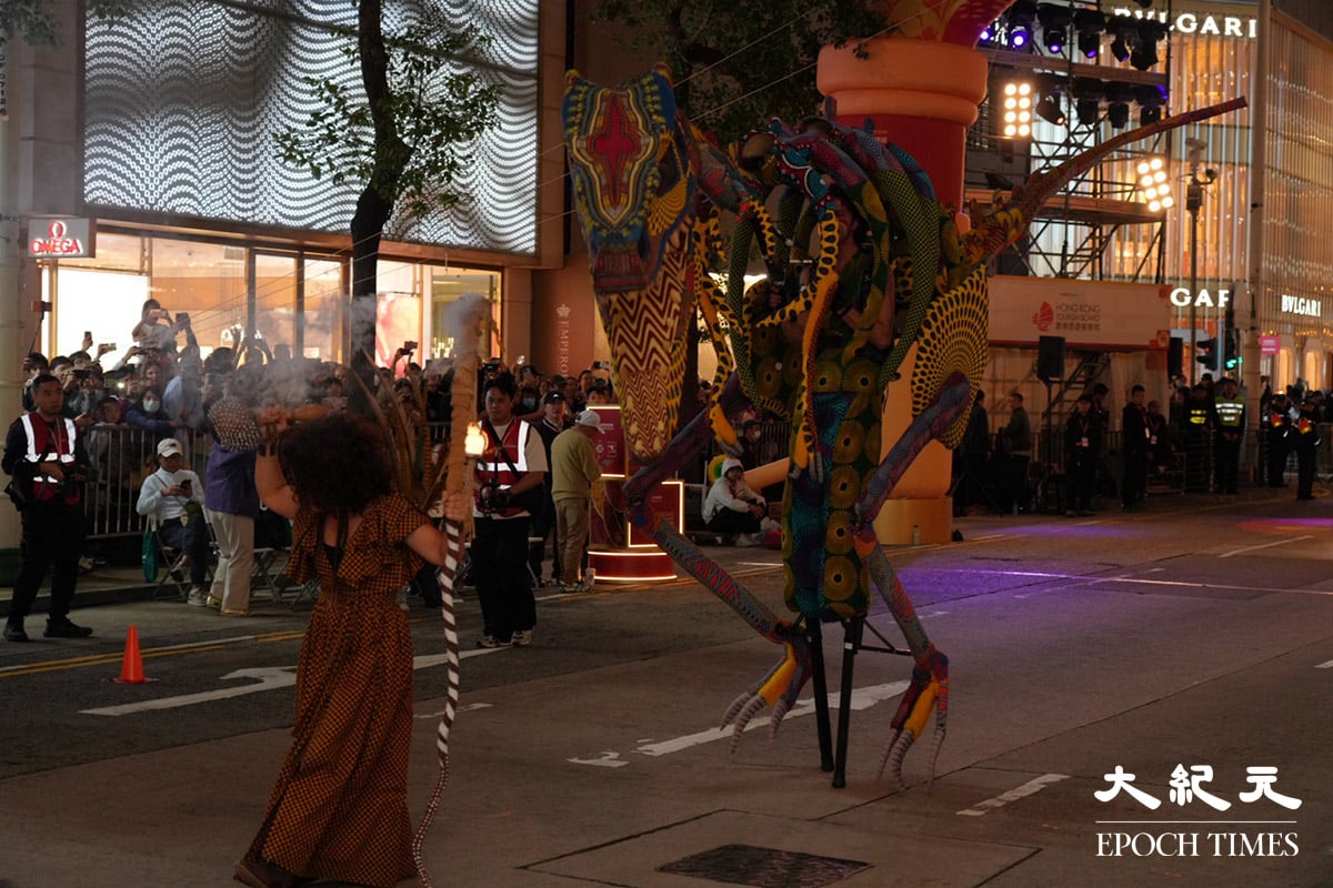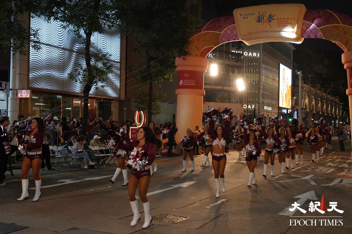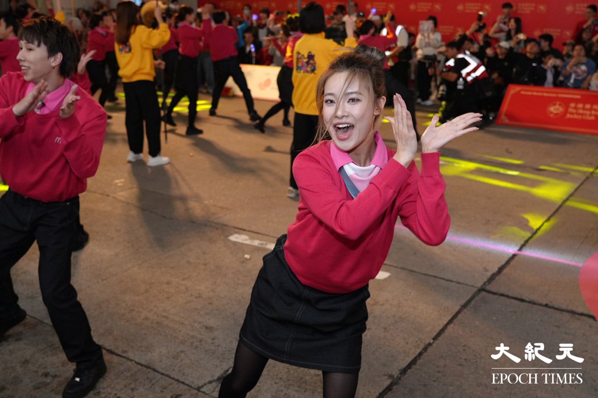 香港賽馬會花車還有舞龍表演。(霄龍/大紀元)