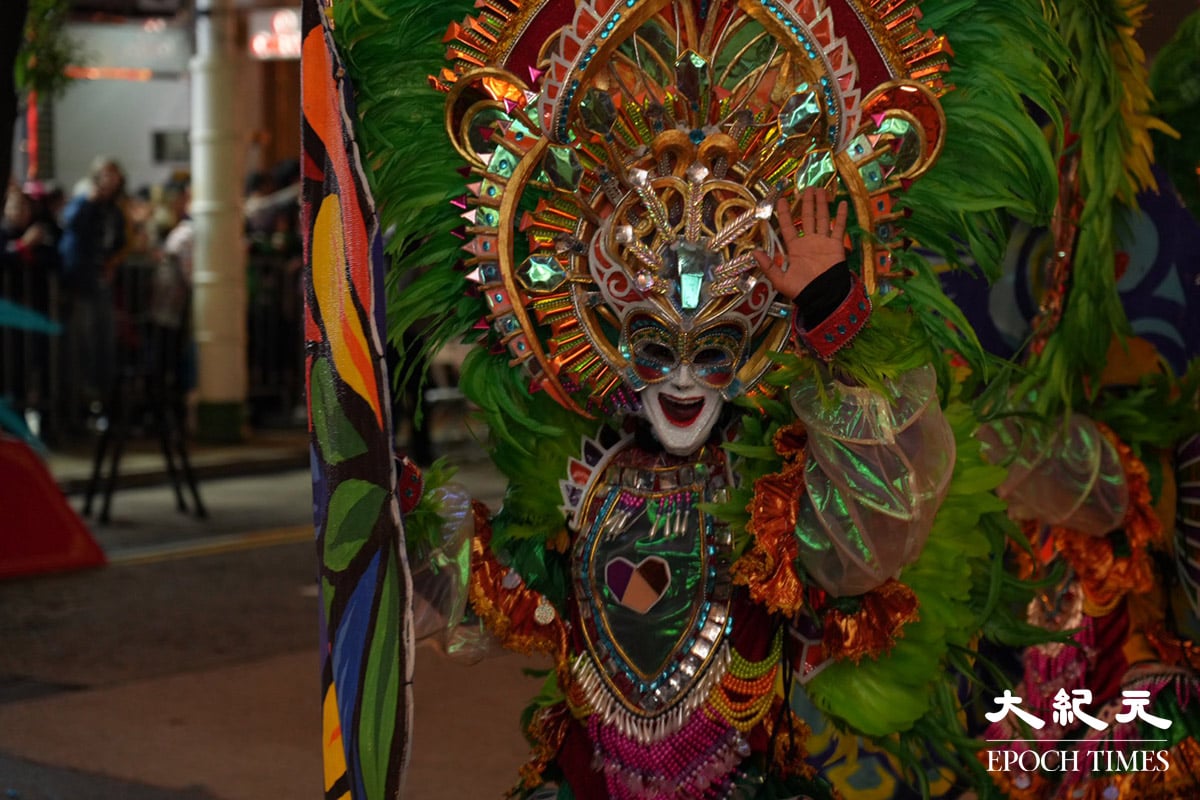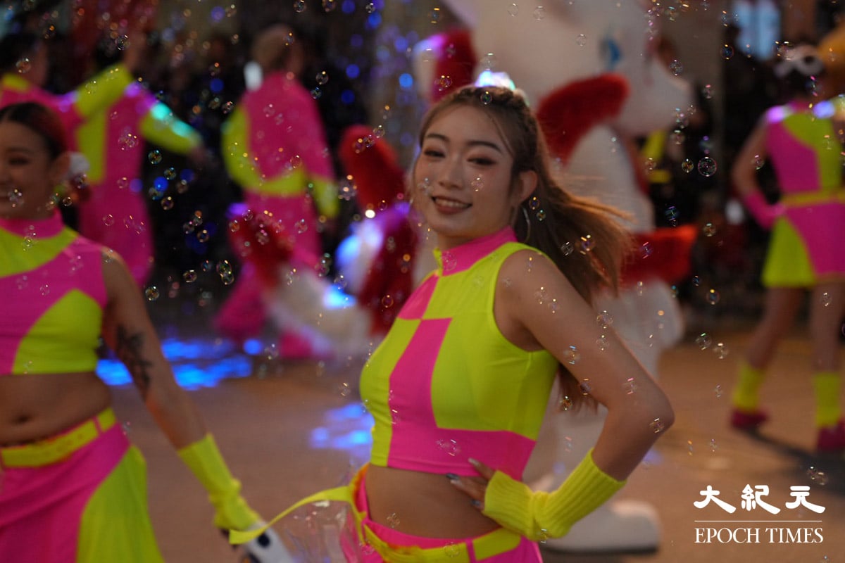 「香港潮流玩具花車」30位舞者身著玩具風主題服裝跟隨節奏跳舞。(霄龍/大紀元)