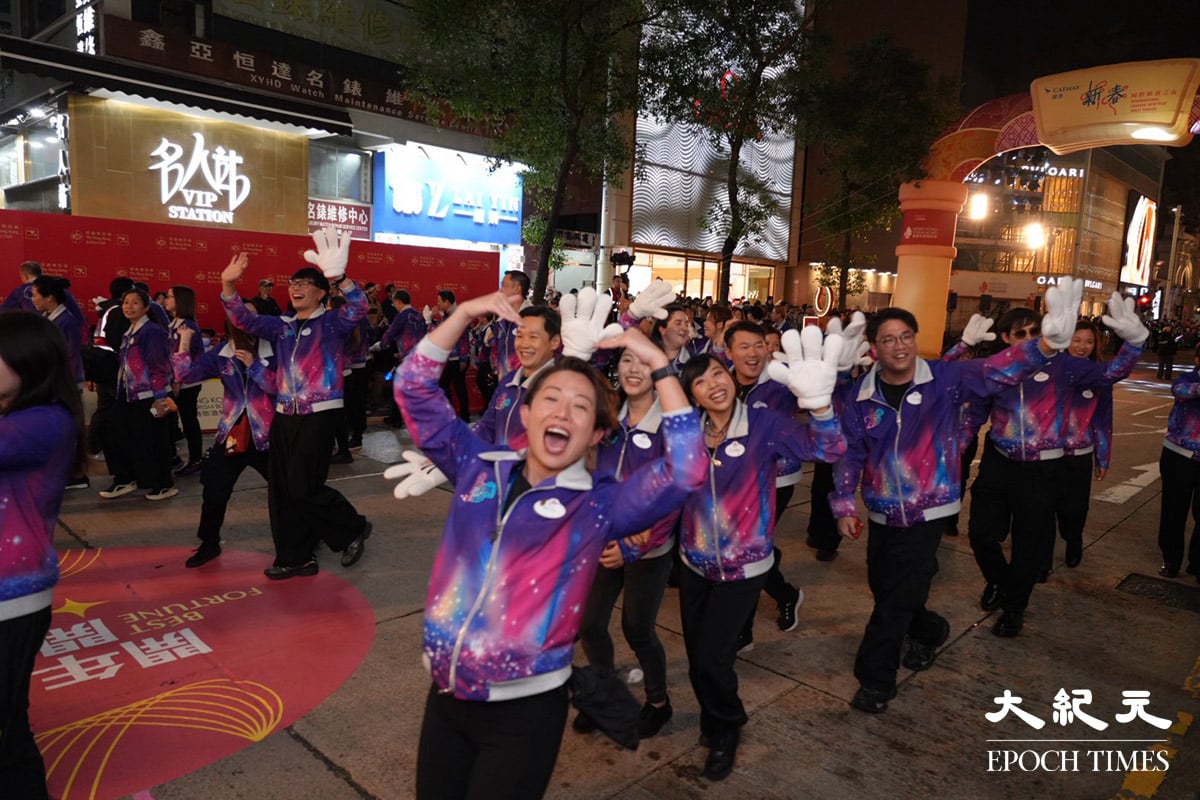 海洋公園演藝人員向觀眾送上祝福。(霄龍/大紀元)