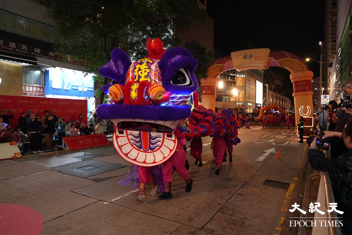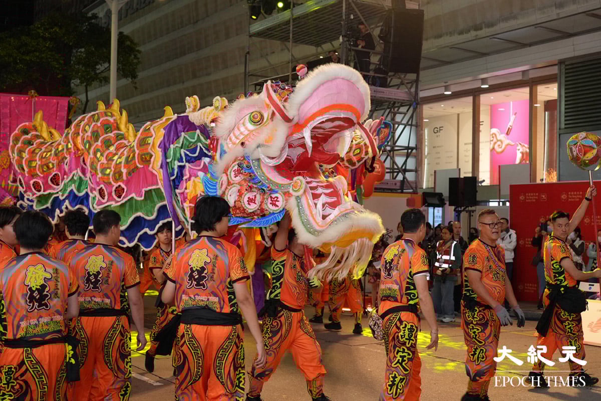林村許願廣場的舞龍隊伍。(霄龍/大紀元)