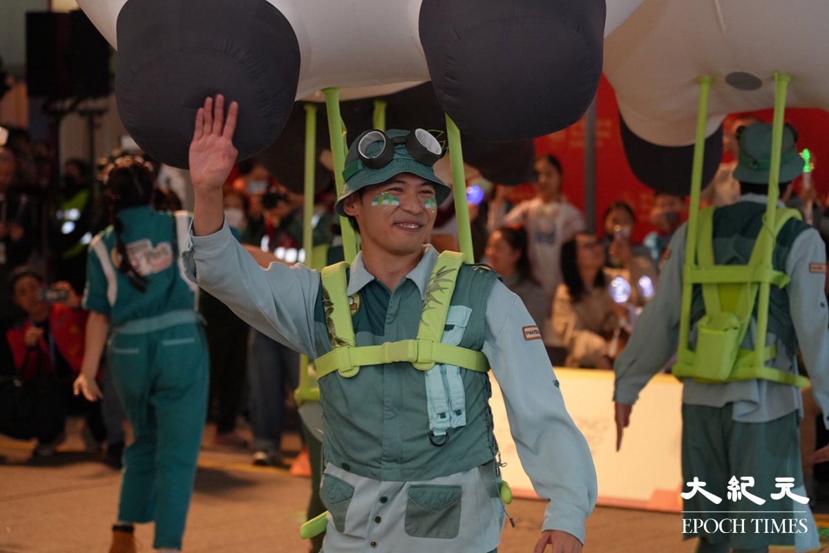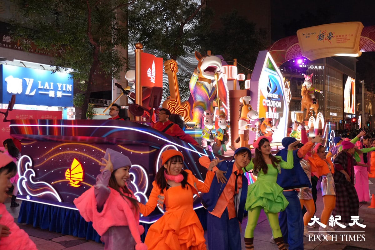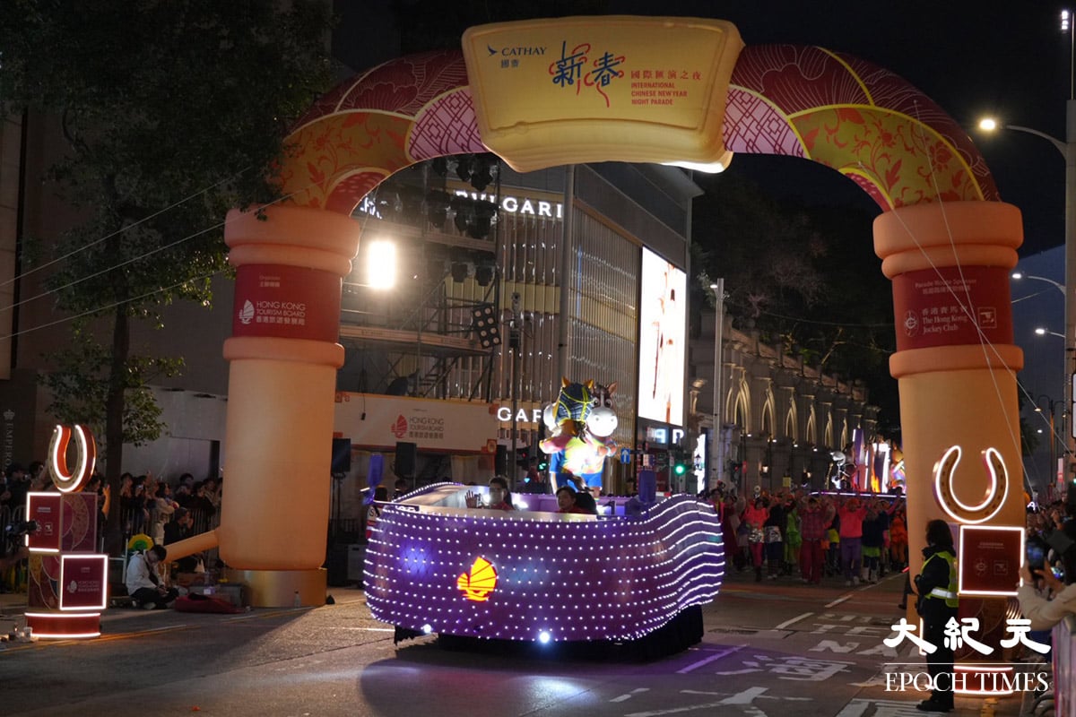 香港旅遊發展局的花車巨型LED船帆與百變馬仔吉祥物互相輝映。(霄龍/大紀元)