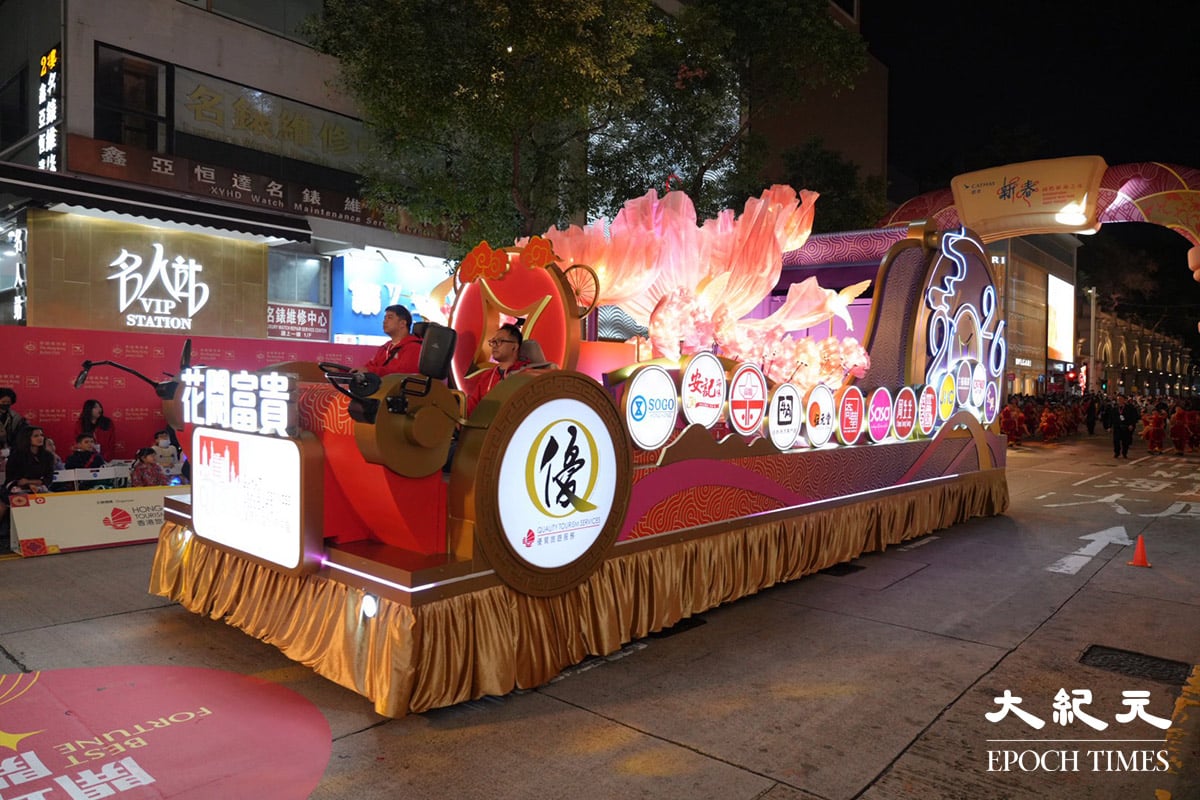 優質旅遊服務協會花車靈感源自新年揮春納福、牡丹呈瑞的傳統風俗。(霄龍/大紀元)