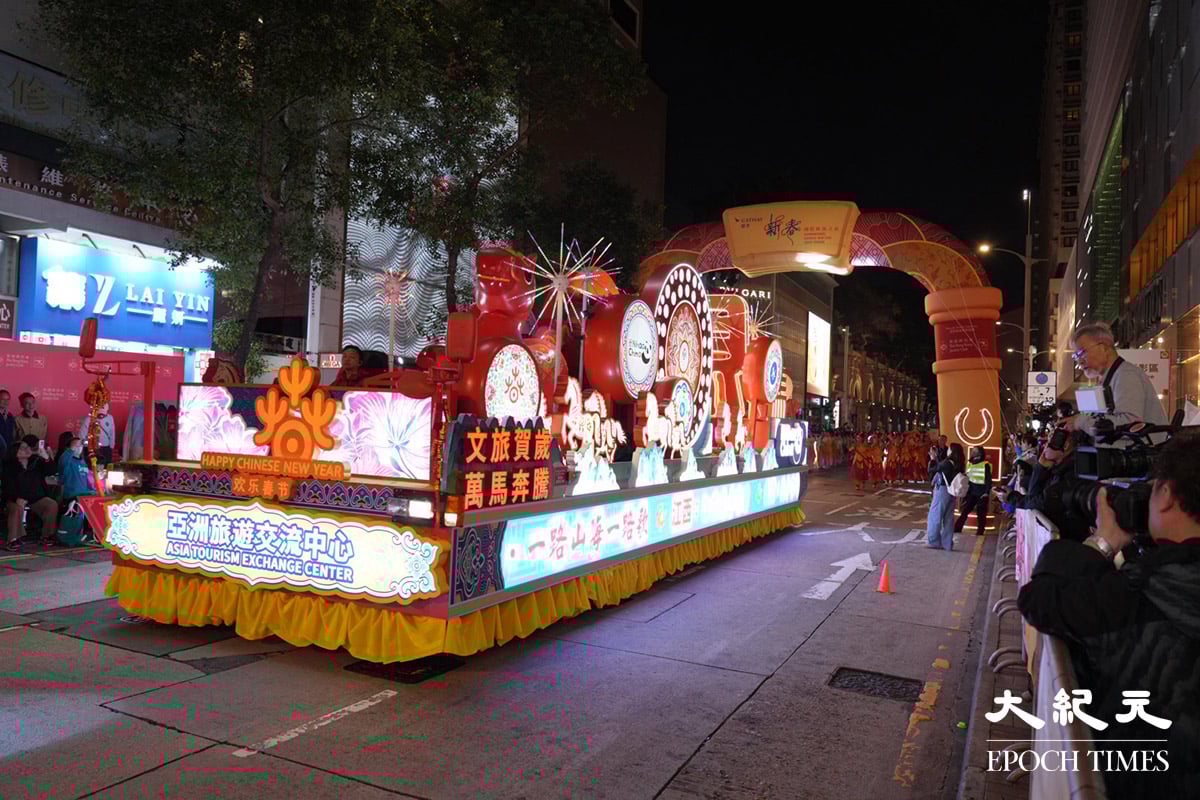 亞洲旅遊交流中心花車。(霄龍/大紀元)