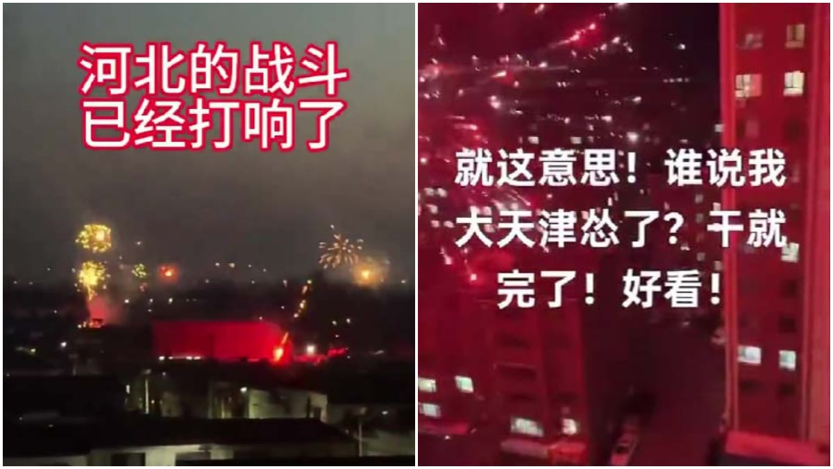 除夕夜晚和初一凌晨,多地網民將當地燃放煙花爆竹的影片傳到網上,並打上與當局對抗意味的字幕,隱晦地表達反抗暴政的意味。