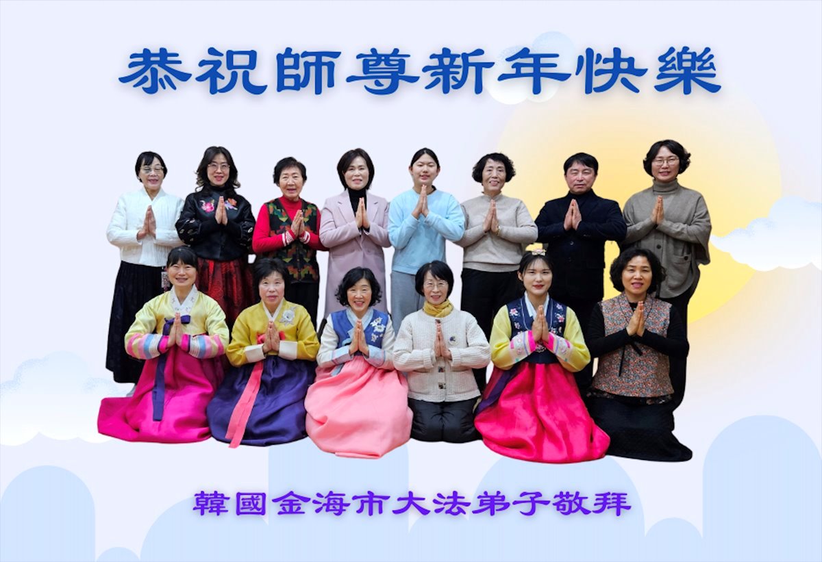 韓國金海市法輪功學員恭祝李大師新年快樂。(明慧網)