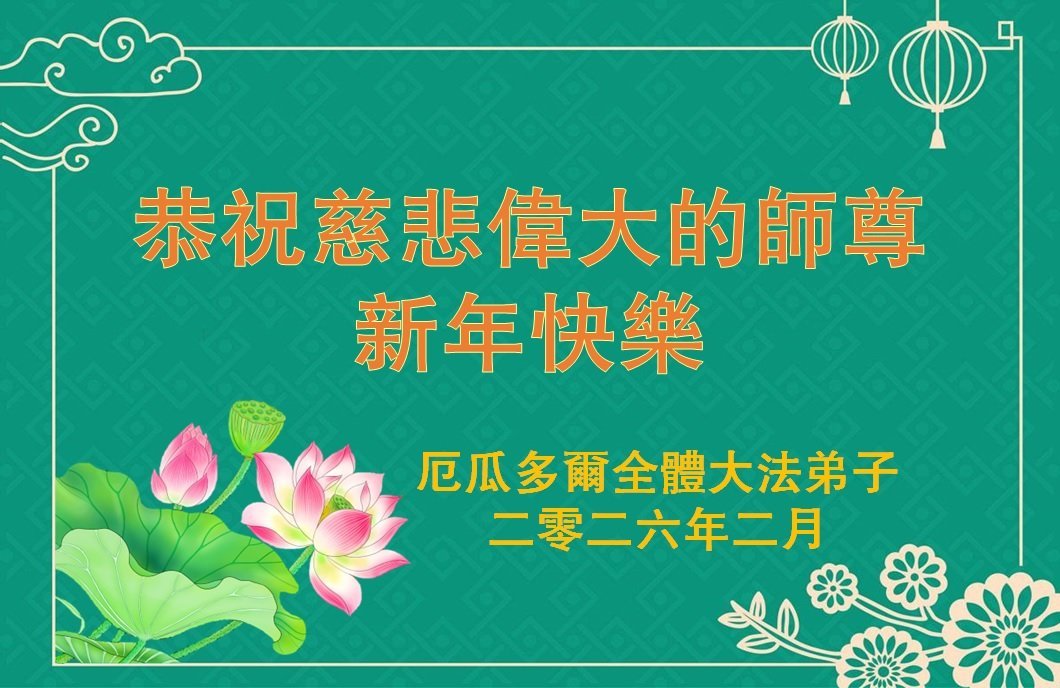 厄瓜多爾全體法輪功學員恭祝李大師新年好。(明慧網)