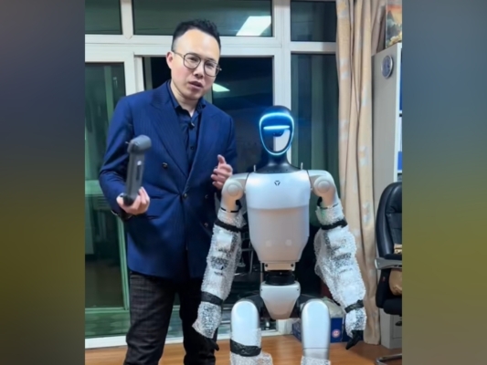 社交媒體上一則影片顯示,一位美國人購買春晚同款宇樹機械人G1,讓它做蛋炒飯。結果該機械人連炒鍋都端不穩,蛋炒飯掉在地上,宇樹機械人也接著滑倒。