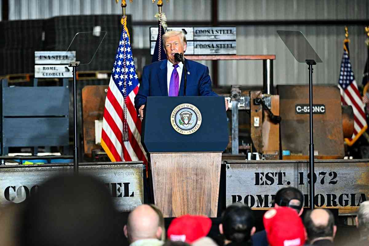 「我看著眼前這些鋼材和設備——它們才剛添置起來,全靠我們的關稅」,特朗普在向現場群眾致意時說,「多虧我稱之為『特朗普關稅』(Trump tariffs)的措施,庫薩鋼鐵的生意又繁榮起來了。」