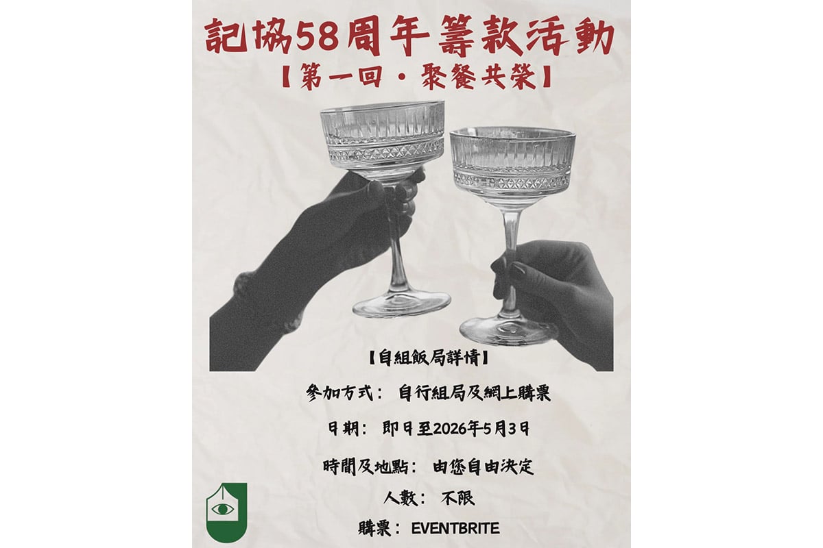 記協表示,飯局籌款收益將全數用於支持記協日常運作、維護新聞自由及記者權益工作。