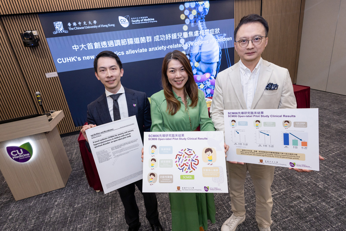 中大醫學院跨學科團隊表示,針對治療兒童焦慮情緒和感官過敏的問題,已經成功研發SCM06配方,在實驗室研究中已證實能促進產生具穩定神經作用的物質,有望透過腸腦之間的聯繫(腸腦軸)緩解情緒症狀。