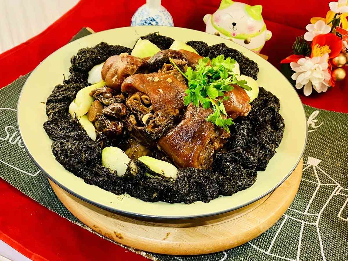 這道菜餚取「發財就手好事來」的諧音,是適合中國新年的料理。這道菜的製作過程比較複雜,但可以提前一天準備。上菜前,把豬手和蠔豉用大碗裝好,蒸15分鐘,再放上髮菜、青菜,以及淋上汁液。