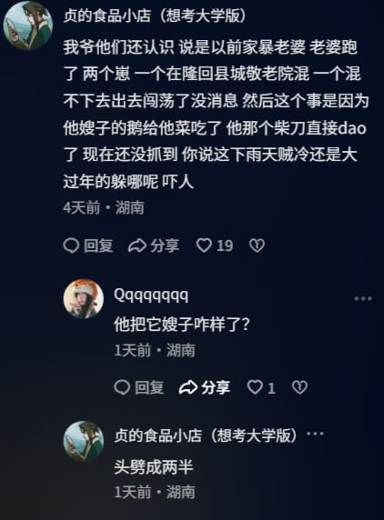 中國新年期間,湖南邵陽市隆回縣發生一宗命案,據悉,兇手於2月18日被村民抓獲。