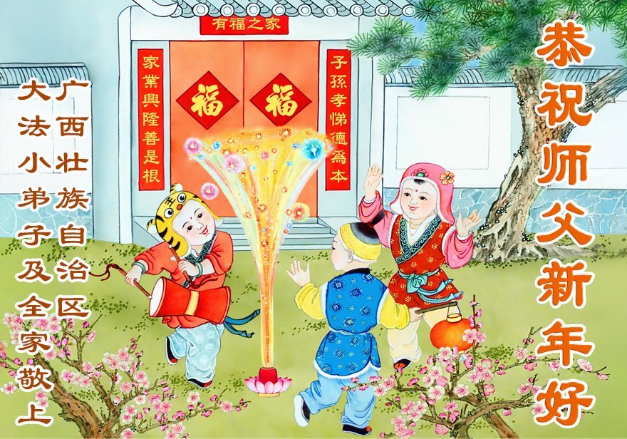 廣西壯族自治區法輪功小弟子及全家恭祝李大師新年快樂