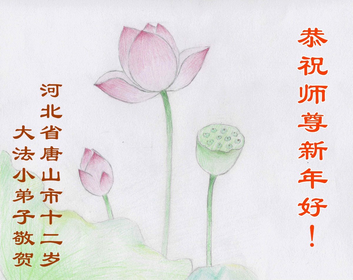 河北省唐山市12歲法輪功小弟子恭祝李大師新年好