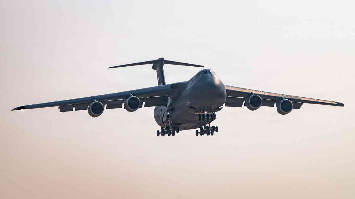 根據飛機上的文字和文件圖像,路透社也確認該飛機為美國空軍C-5M「超級銀河」運輸機。