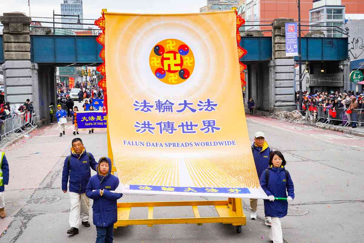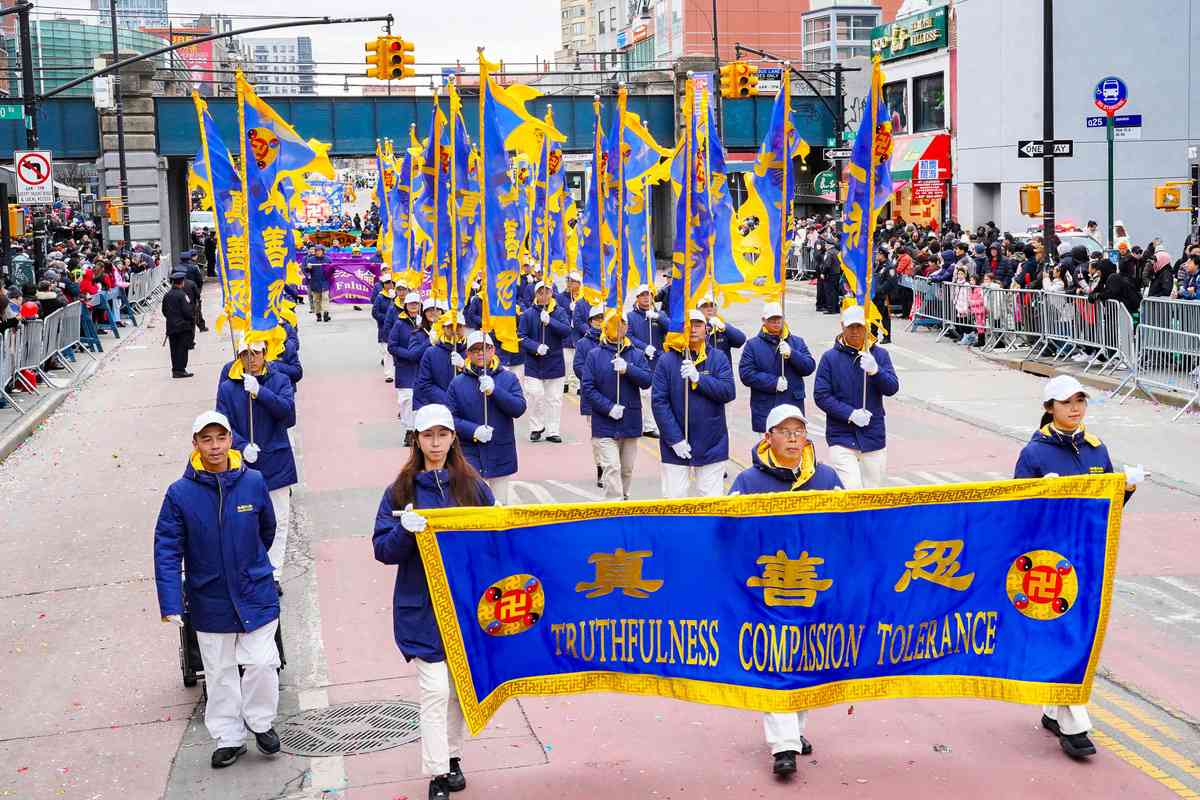 作為美東規模最大的黃曆新年遊行之一,今年適逢活動30周年,近百團體、五十花車齊賀年,沿途吸引數十萬各族裔民眾駐足觀看,法拉盛街頭鑼鼓喧天、彩旗飛揚,年節氣氛直衝雲霄。遊行隊伍中,法輪功隊伍的多個方陣與樂團表演格外引人注目。