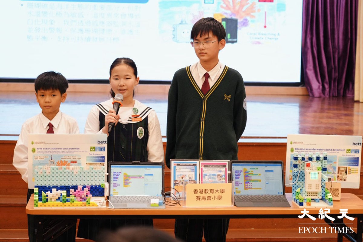 香港教育大學賽馬會小學隊伍設計的「珊瑚溫度警報站」透過結合警報功能的感應器監測海洋水溫,希望防止珊瑚礁因為水溫異常而出現的白化現象。另一項作品「海洋噪音偵測裝置」透過感應器和程式設計,即時監測海洋噪音污染。此裝置不僅能發出警報,還結合物聯網與主動降噪技術,能改善海洋生物的生存環境。