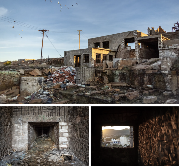 在從沃利索斯(Volissos)蜿蜒通往克拉莫斯(Keramos)廢棄銻礦的山路頂端,一塊被大火燒燬的標誌牌——或許它曾經用來標示令人眩暈的海拔高度——上面用噴漆寫著一句簡單的抗議:「禁止採礦」(kamia exoryxi,希臘語)。