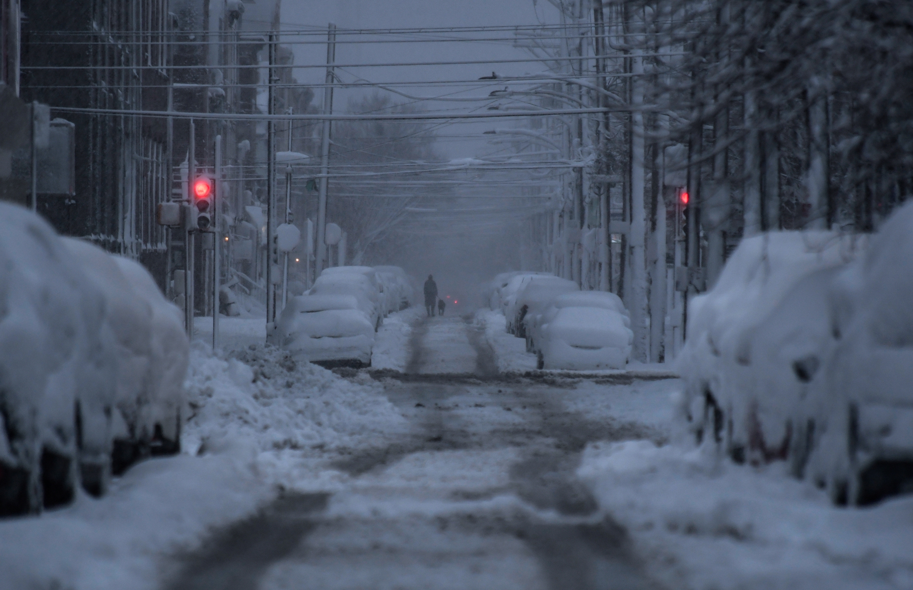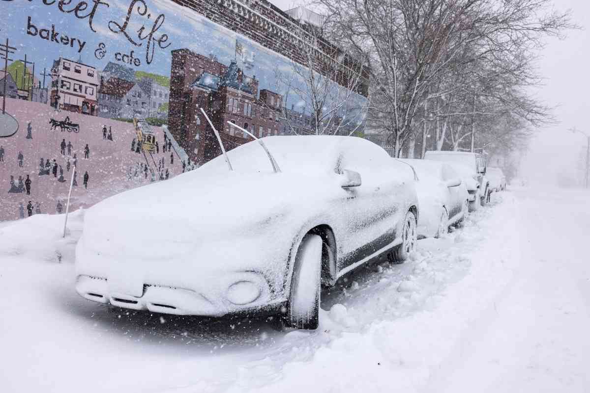 2026年2月23日,賓夕凡尼亞州費城遭暴風雪襲擊,街道和車輛被厚厚的積雪覆蓋。(Matthew Hatcher/Getty Images)