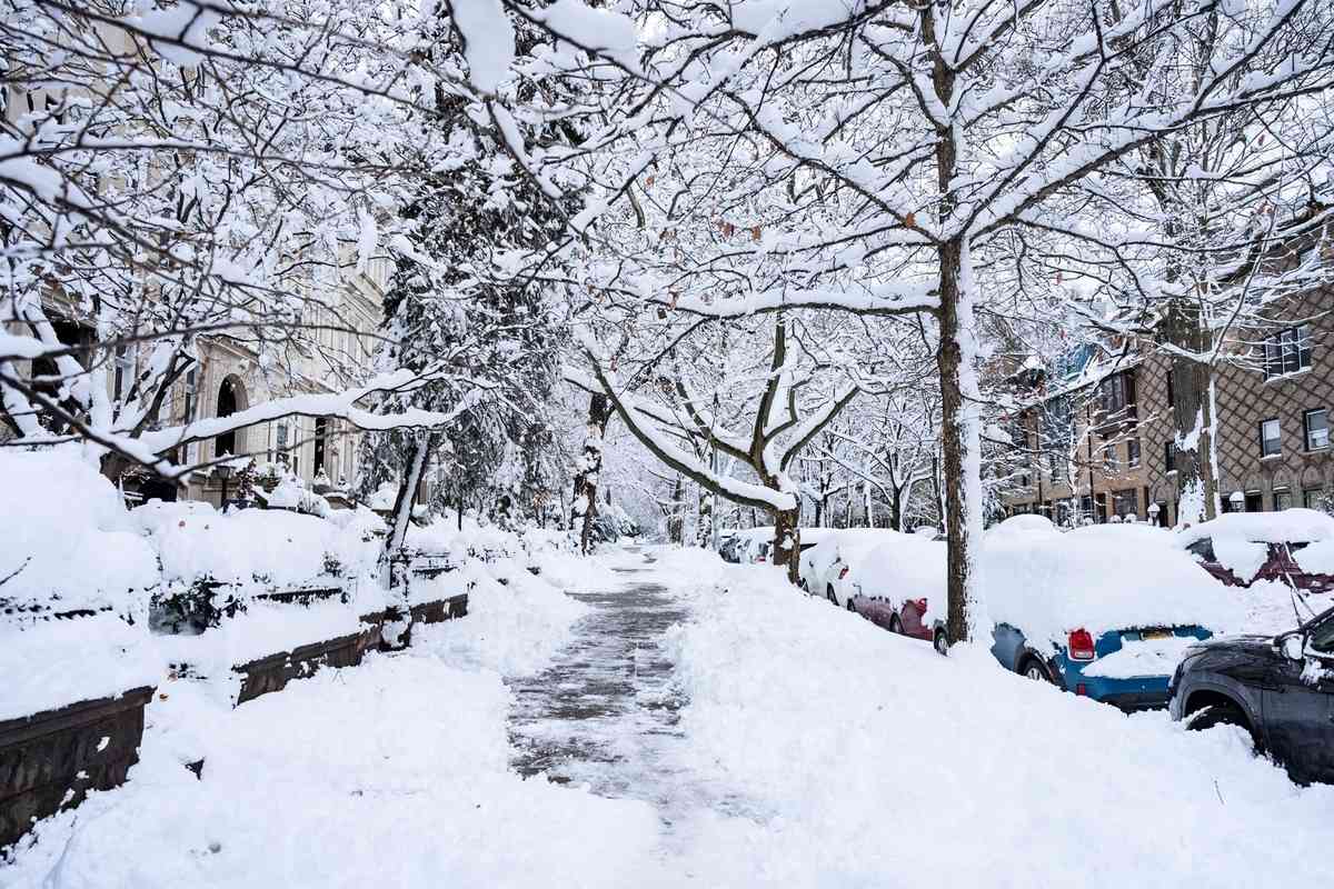 2026年2月23日,紐約市布魯克林區遭暴風雪襲擊,街道被厚厚的積雪覆蓋。(Jeremy Weine/Getty Images)