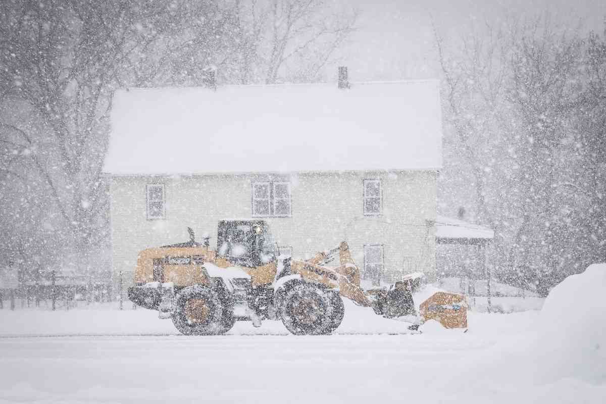 2026年2月23日,新澤西州諾伍德(Norwood)遭暴風雪襲擊,一台挖掘機清理車道上的積雪。(Kena Betancur/Getty Images)