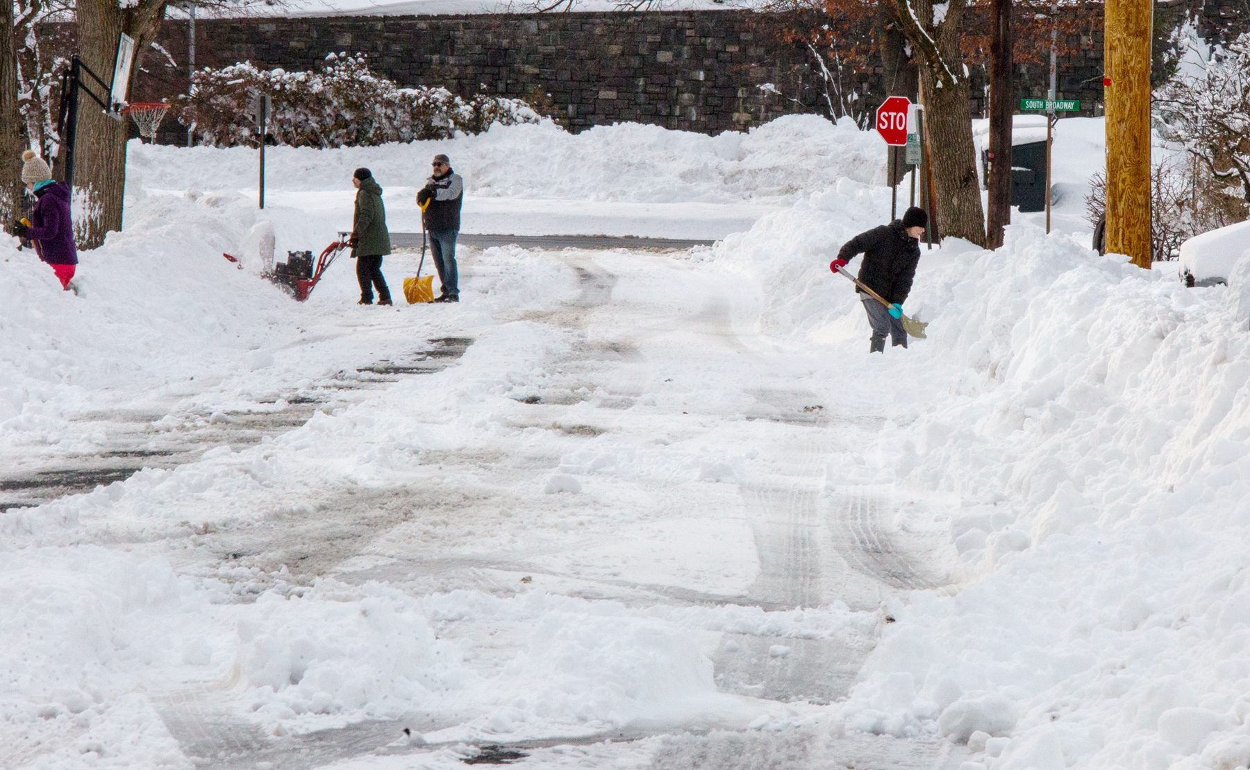 2026年2月23日,紐約州奈阿克(Nyack)遭暴風雪襲擊,人們清除街道上的積雪。(Kena Betancur/Getty Images)