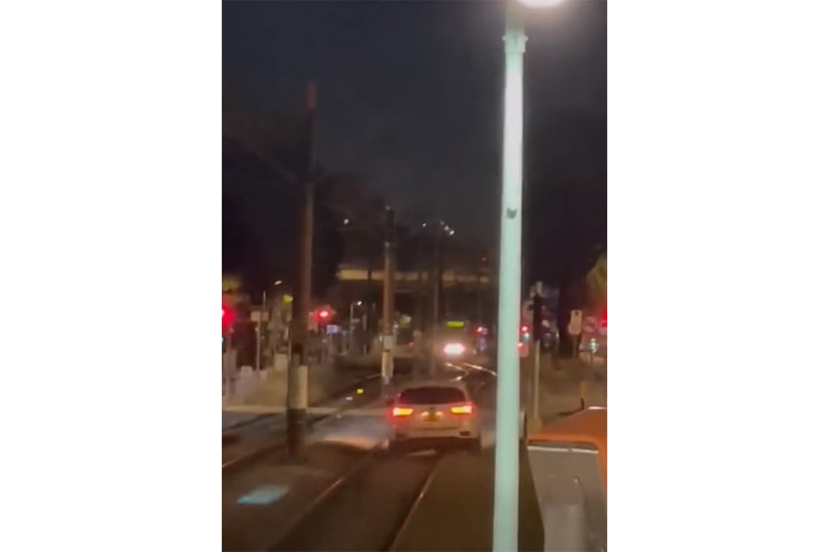 網上流傳一段短片,一輛私家車闖入輕鐵洪水橋站附近的路軌範圍逆向行駛。