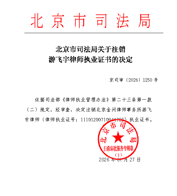 游飛宇說,正因為參加了這些活動,2026年1月27日,北京司法局吊銷了他的律師執業證。通知上寫的是「註銷」,但他表示實際上是「吊銷」,是沒有對話的,不提原因的,強制性地取消。「這是對我的又一次跨國鎮壓。」