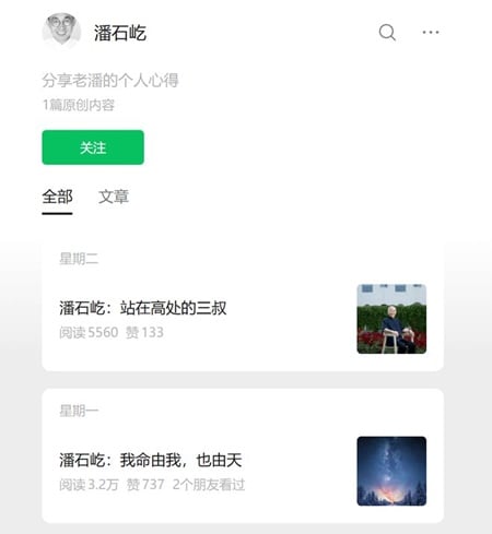 潘石屹的個人微信公眾號斷更三年後,4月6日,潘石屹悄然發布了《我命由我,也由天》的文章,這是他「閉嘴」三年後的首次發聲,回顧半生經歷,分享自己對人生、做事、處世的思考。