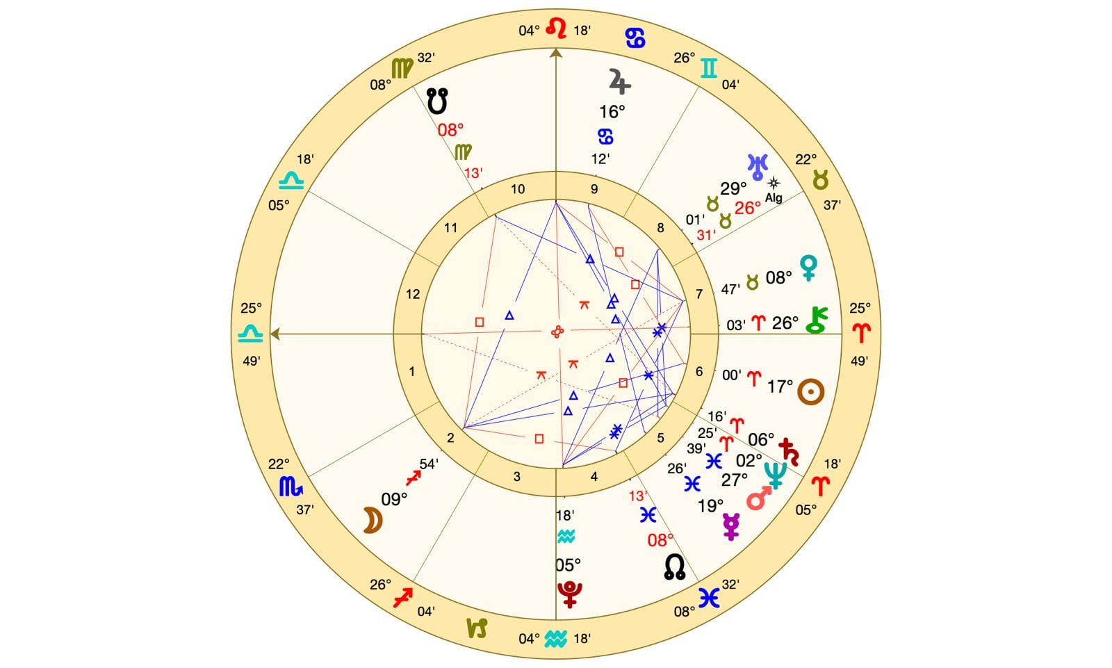在思想與表達層面,第五宮雙魚座的配置尤為關鍵。土星白羊(第六宮)、海王星白羊與火星雙魚聚集於此,形成一種理想與現實交錯、甚至想像與建構的結合。海王星代表理想、想像與意識形態,而土星則象徵現實限制與結構約束,兩者的結合往往帶來對既有信念的去魅與重構。在這樣的背景下,過去所信奉的價值與理論可能顯得不再穩固,甚至需要重新檢驗其有效性。火星的介入則將這種內在張力轉化為外在行動,使思想不再停留於分析層面,而是以行動實踐理想,表達自我。