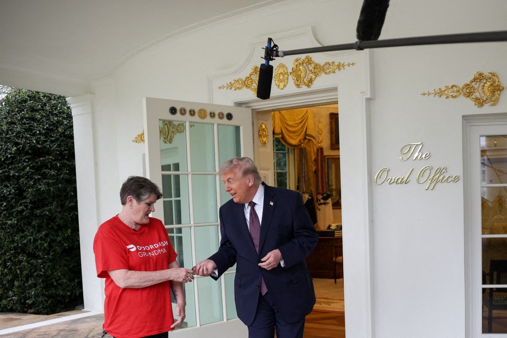 周一(4月13日),一名DoorDash外送員將兩袋麥當勞快餐送到白宮橢圓形辦公室,美國總統特朗普隨即現場給了她100美元小費,並藉此機會推廣他的「小費免稅」政績。